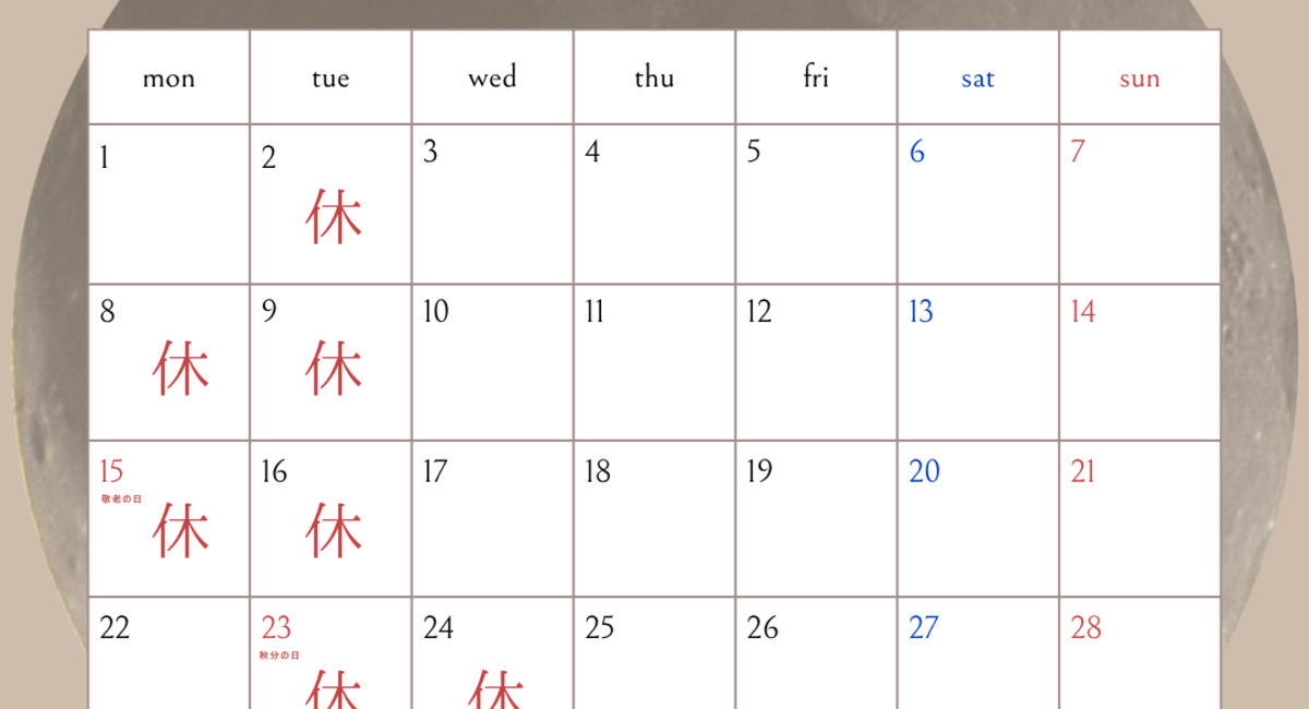 9月の定休日のご案内です。
